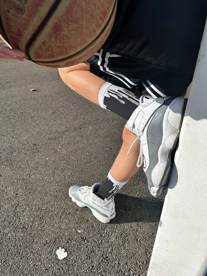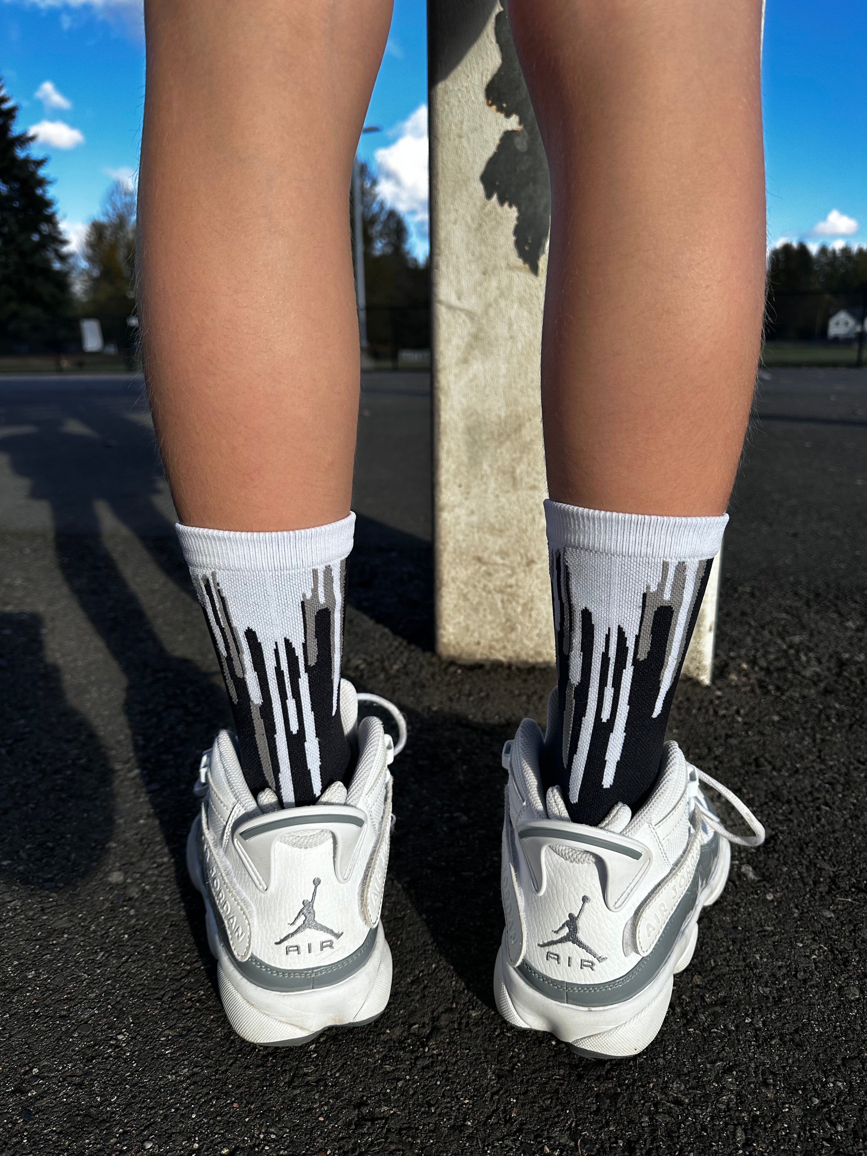 Our socks are crafted using a premium blend of high-quality materials. We chose a specific Nylon, spandex, polyester performance blend so our socks are super soft, breathable, and do not rub. This blend ensures our socks keep their shape after washes, offer a fit that hugs your feet without feeling tight, and stay comfortable (and in place) whether worn for a single game or a full tournament.